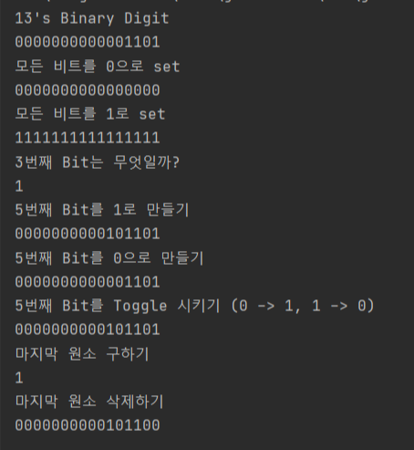 System.out.println("모든 비트를 0으로 set");