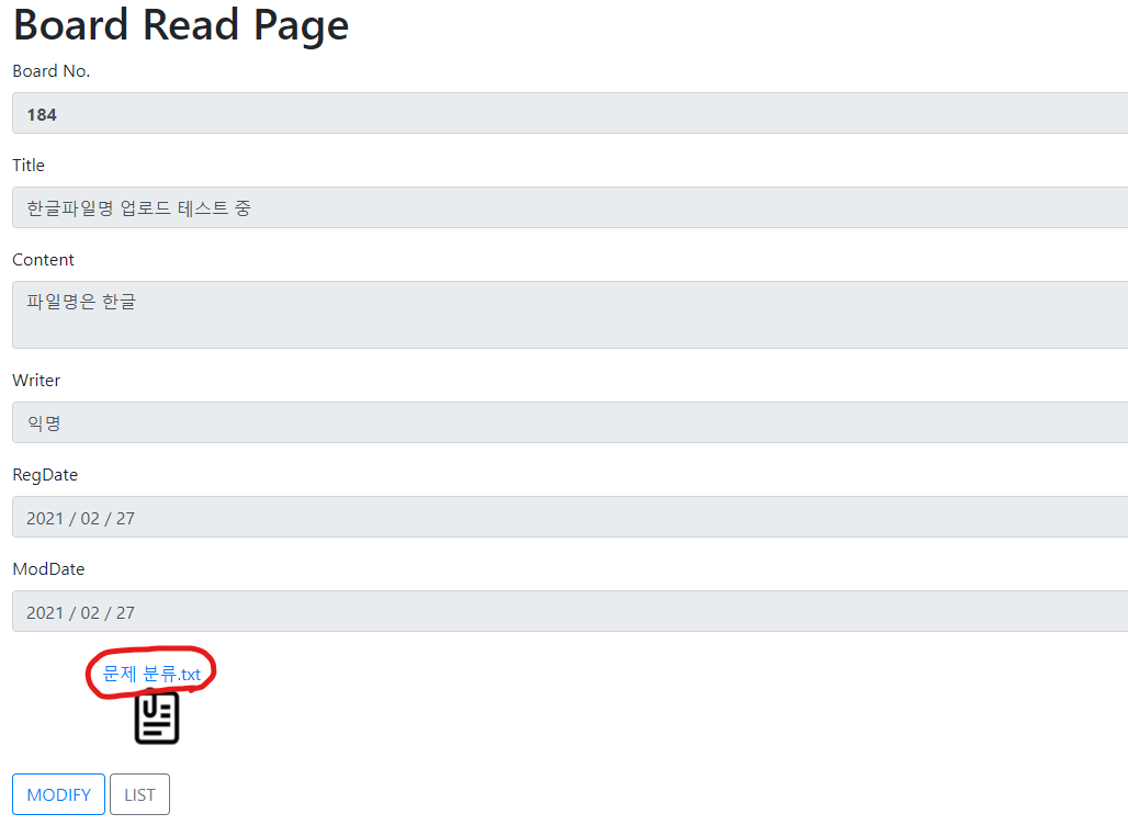 위와 같은 웹 페이지가 있을 때, 첨부 파일의 이름을 클릭하면 파일이 다운로드 되도록 하는 법을 알아본다.