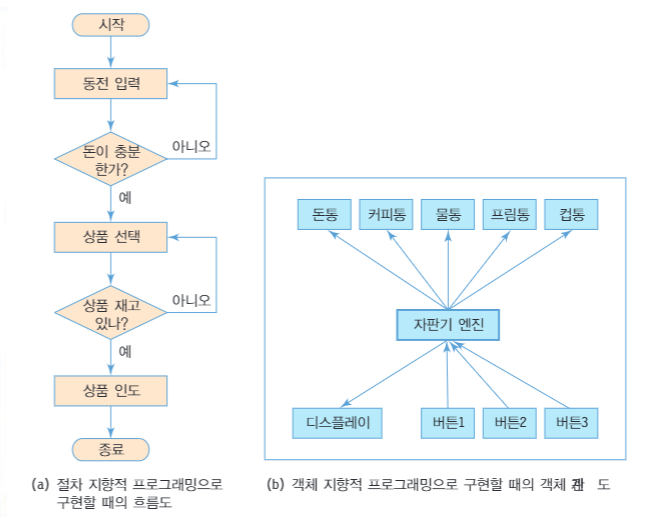 C처럼 실행하고자 하는 절차를 정하고, 이 절차대로 프로그래밍 하는 방법을 절차 지향 프로그래밍이라고 부른다. 절차 지향 프로그래밍은 목적을 달성하기 위한 일의 흐름에 중점을 둔다. 자판기 소프트웨어를 구현하는 경우를 보면 절차 지향 프로그래밍은 흐름도를 설계하고 흐름도상의 동작들을 함수로 작성하며, 흐름도에 따라 일련의 동작들이 순서대로 실행되도록 작성한다.