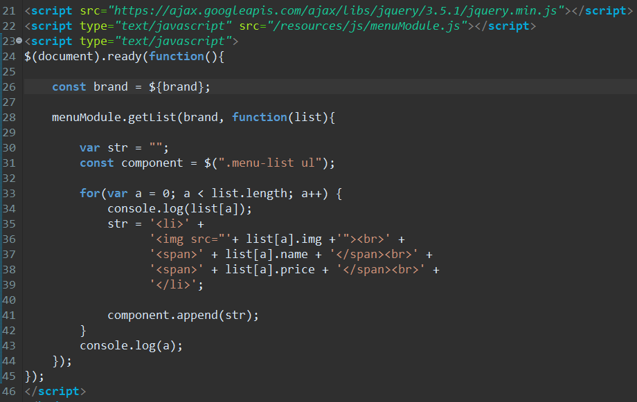 > <div class="menu-list">의 <ul> 태그 밑에 getList()의 결과 값인 메뉴 목록을 리스트로 붙여보자.