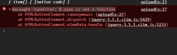 CDN이 문제였다. 제이쿼리 cdn은 몇 가지의 버전을 지원하는데 자원을 아끼자고 "slim"버전을 가져온 것이다.