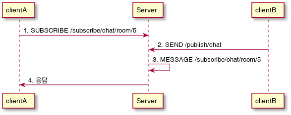 다음은 ClientA가 5번 채팅방에 대해 구독을 하는 예시이다.