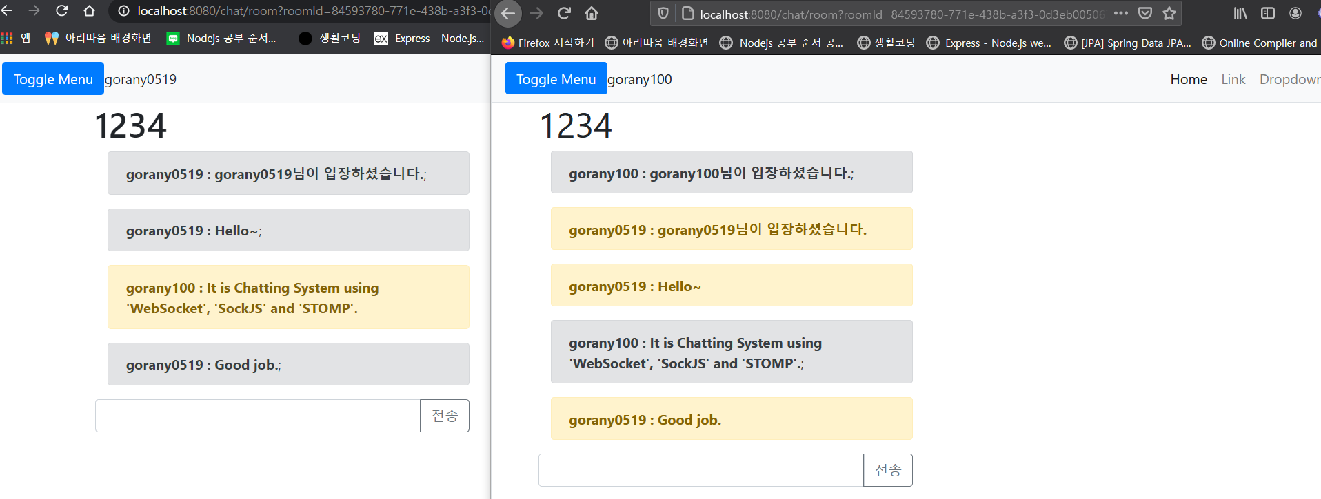 들어가기 앞서 [Spring Boot] WebSocket과 채팅 (3) - STOMP [Spring Boot] WebSocket과 채팅 (2) - SockJS [Spring Boot] WebSocket과 채팅 (1) 일전에 WebSocket(웹소켓)과 SockJS를 사용해 Spring 프레임워크..