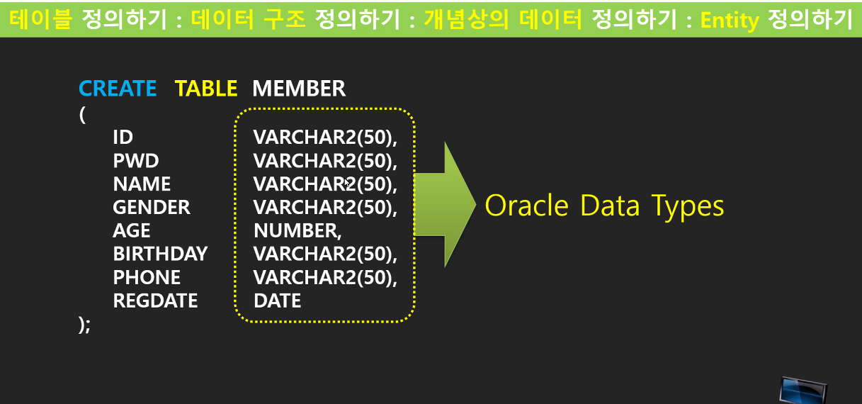 - DDL : CREATE / ALTER / DROP (테이블을 조작)