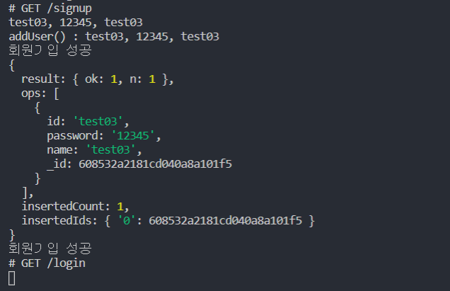 console.log('addUser() : ' + id +", " + password + ', ' + name);