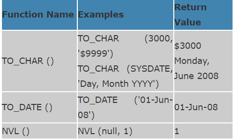 - SUBSTR ('GOOD MORNING', 6, 7) : MORNING