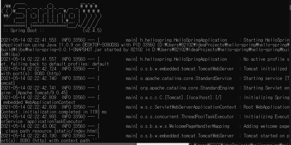 그럼 인텔리제이에서 보던 화면을 콘솔창에서도 볼 수 있다.