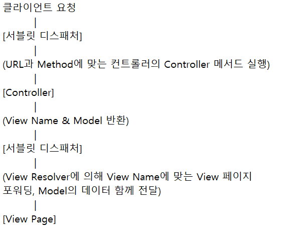 스프링을 사용하면 DispatcherServlet이라는 핸들러 서블릿이 모든 URL로 들어오는 요청을 받아 스프링의 Bean으로 등록된 컨트롤러 중 적절한 URL매핑을 갖는 녀석을 찾는다.