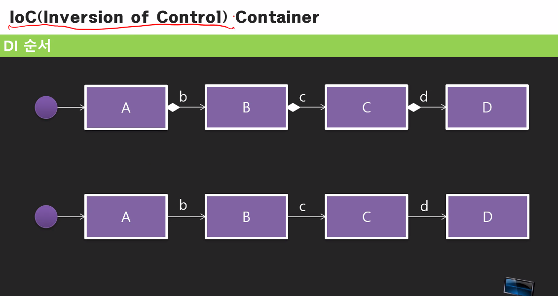 스프링이 DI를 해준다. 직접 관리하는 것보다 속도는 느릴 수 있으나 변경이 유연하다