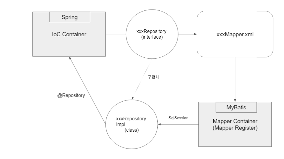 사전 지식으로 알아야할 것이 Spring에게 IoC Container가 있듯. MyBatis에게도 Mapper Container(Mapper Register)라는 상자가 있다. 그러므로 MyBatis는 @Mapper가 붙은 자바코드나, xxxMapper.xml을 상자에 담을 수 있는 것이다.