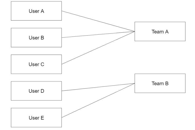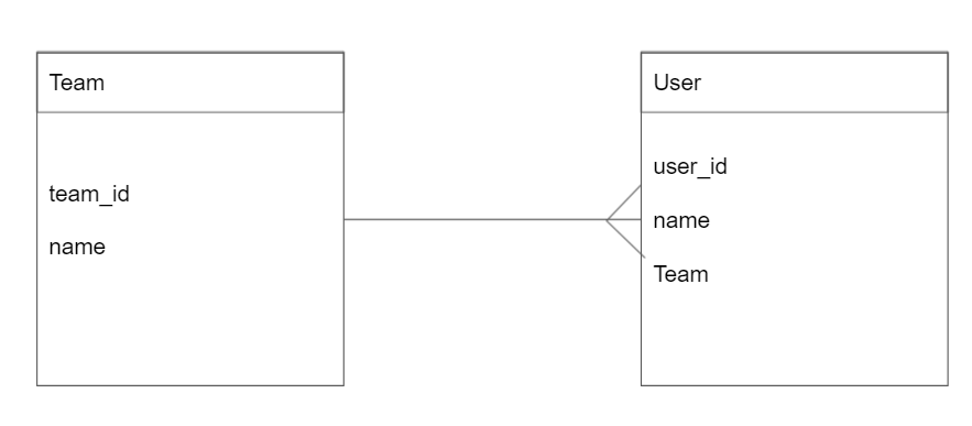 다음과 같은 관계를 갖는 User와 Team 엔티티가 있다 가정하고 예를 들어보겠다.