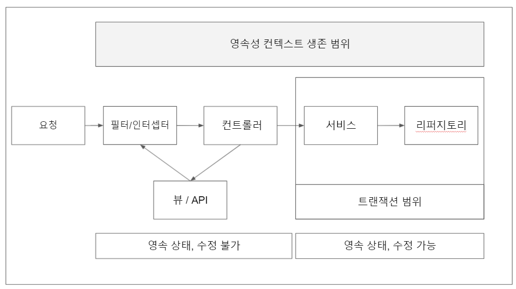 클라이언트가 요청한 View 또는 API가 반환되어야 커넥션을 반환하고 영속성 컨텍스트를 끝낸다.