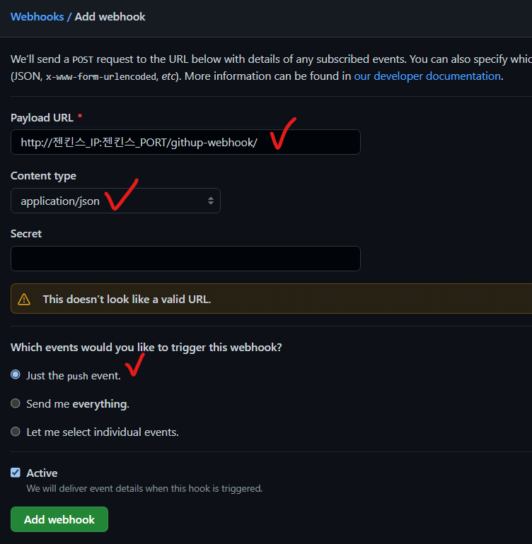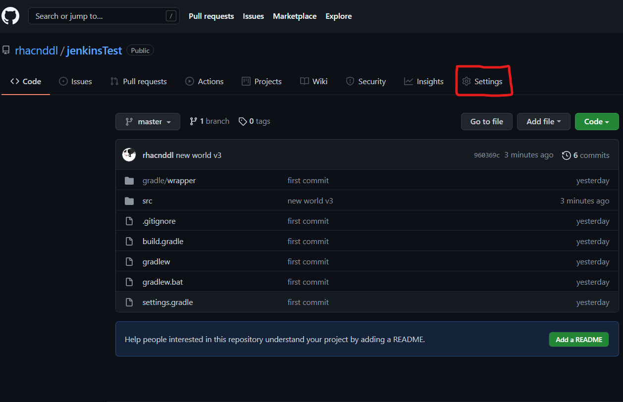 이제 진짜 다왔다. 하나만 설정해주면 된다. Github로 가서 젠킨스에 연동한 리퍼지토리로 가보자.