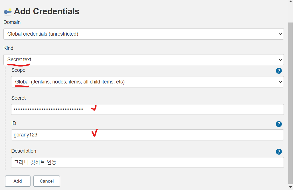 Secret : Token 입력