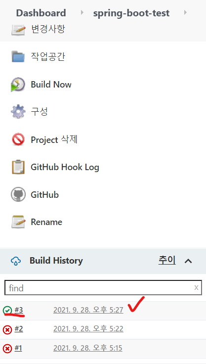 | [Jenkins] 젠킨스로 Spring Boot 빌드 (1) | 2021.09.27 |