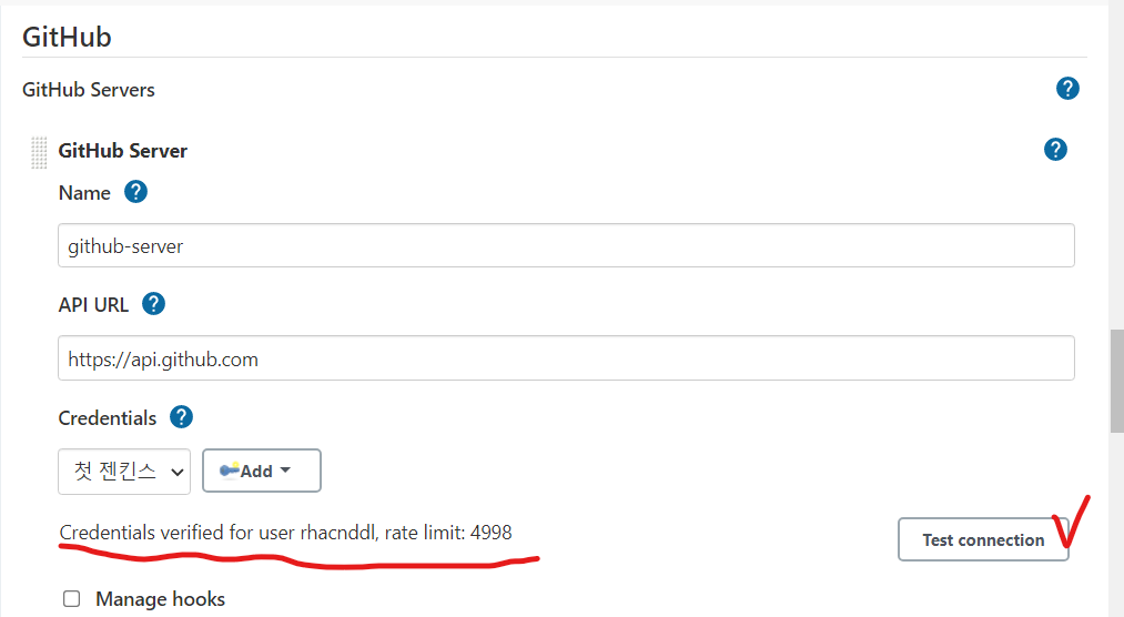 테스트를 눌렀을 때 위와 같이 뜨면 성공이다.