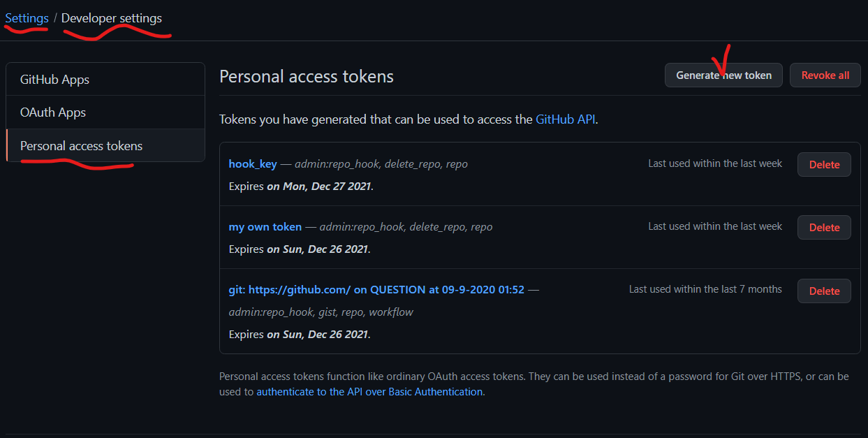 혹시 깃허브 Access token이 없다면 하나 만들고 가도록 하자.