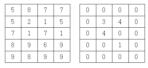 첫째 줄에 M, N(1≤N, M≤300)이 주어진다. 다음 M개의 줄에는 N개의 자연수로 각 칸의 높이가 주어진다. 각각의 높이는 1,000,000,000를 넘지 않는다.
