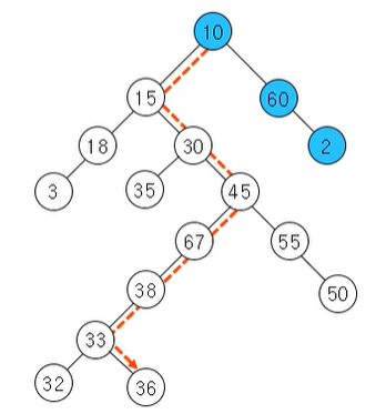 * 이진트리의 최적합 경로 찾기